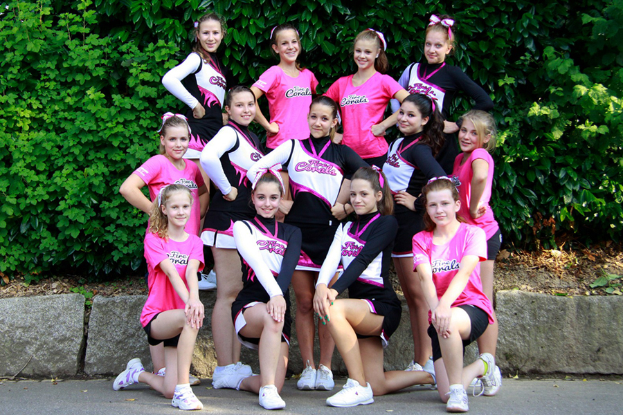 Zehn Aktive in zwei Groupstunts plus Ersatzcheerleader |